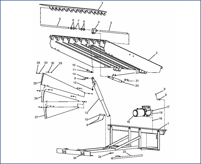 H.兩側(cè)均設(shè)有防卷制裙板,以防止意外傷害到達(dá)平臺。有一個支撐桿,確保維修人員進(jìn)入對接橋進(jìn)行維修。