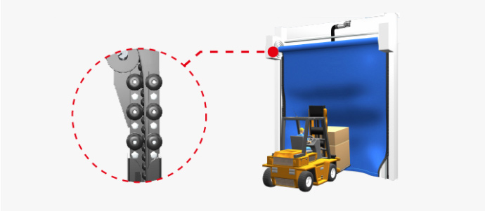 2.采用拉鏈將織物與側(cè)框?qū)к壵w連接起來,實(shí)現(xiàn)更好的密封性能和氣密性。當(dāng)發(fā)生事故碰撞時(shí),織物可以從導(dǎo)軌上走出來,然后自動(dòng)返回。這減少了日常維護(hù)。